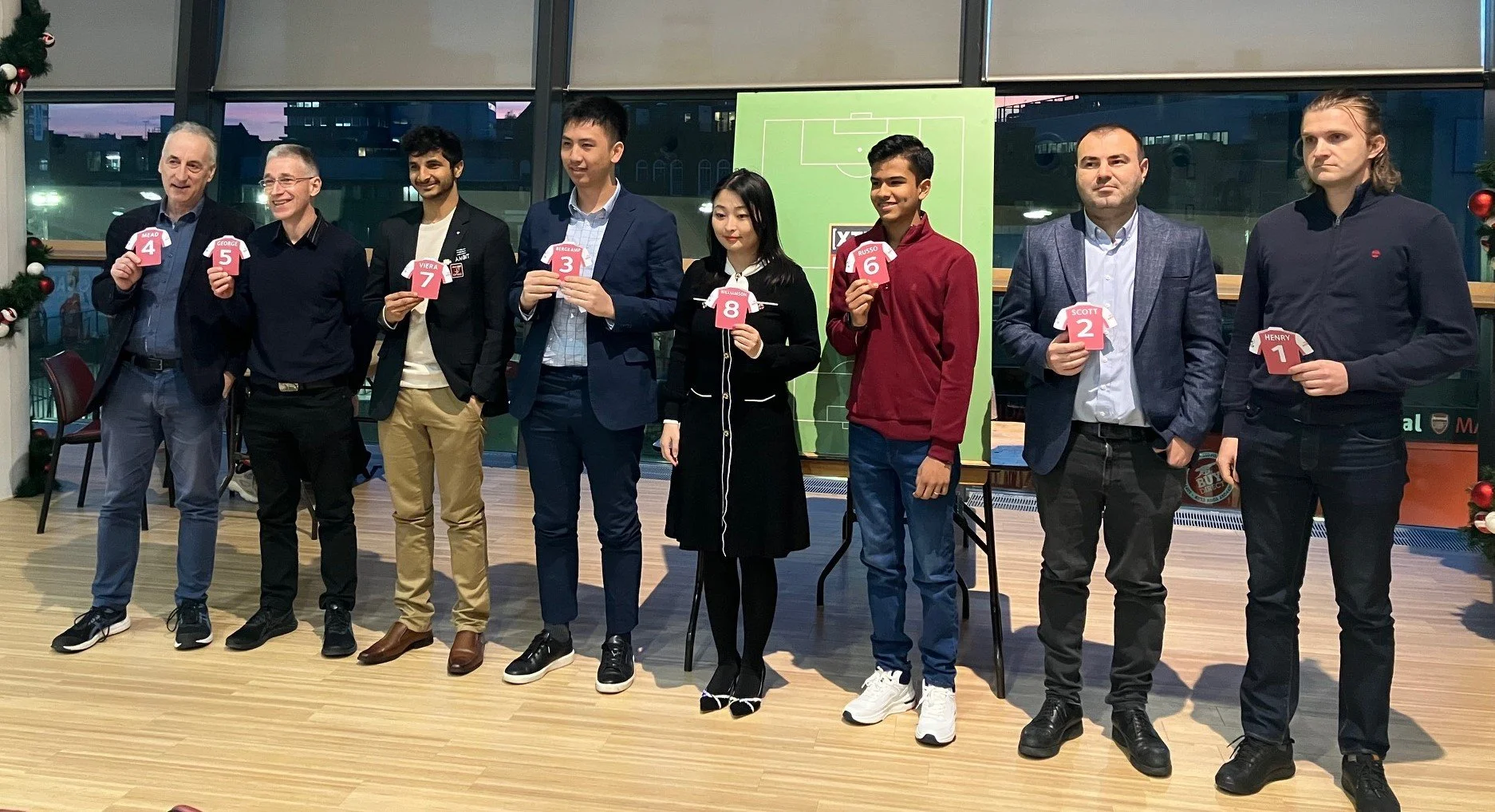 The drawing of lots to determine pairings for the 2024 XTX Markets London Chess Classic took place at the Emirates Stadium on Thursday 28th November. Under the watchful eye of Chief Arbiter Shohreh Bayat, the Grandmasters each chose an Arsenal shirt and revealed the number on the back to determine their position in the draw. Tournament director Malcolm Pein stepped in for Gawain Jones who couldn’t be present.